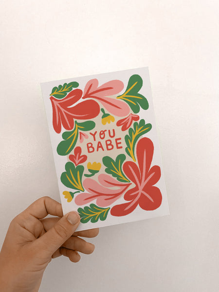 A beautifully illustrated coastal plants card reading You Babe, for sending messages of love, friendship and thanks.