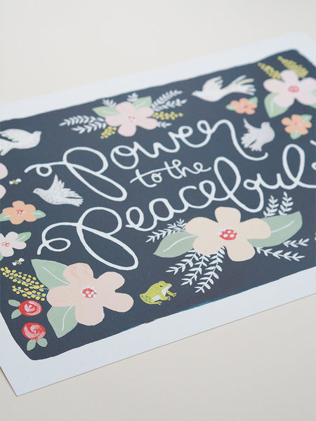 Power to the Peaceful art print. A pretty & positive piece of art to hang on your wall, from an original gouache illustration by Jade.