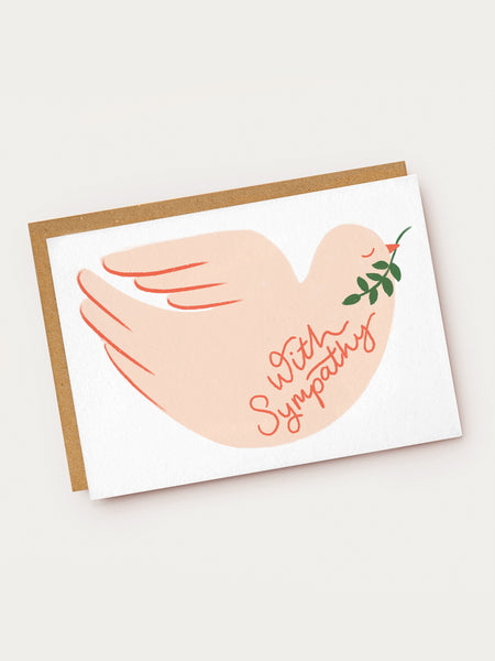 A beautifully illustrated sympathy card with a pastel peaceful dove illustration.